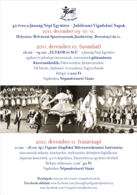 Az “Örökös Kiváló Együttes” címmel és a “Bartók Nívódíj”-jal büszkélkedő Jászság Népi Együttes azonban maga is nagyszabású rendezvénnyel várja a közönséget decemberben. A csoport fennállásának 40.