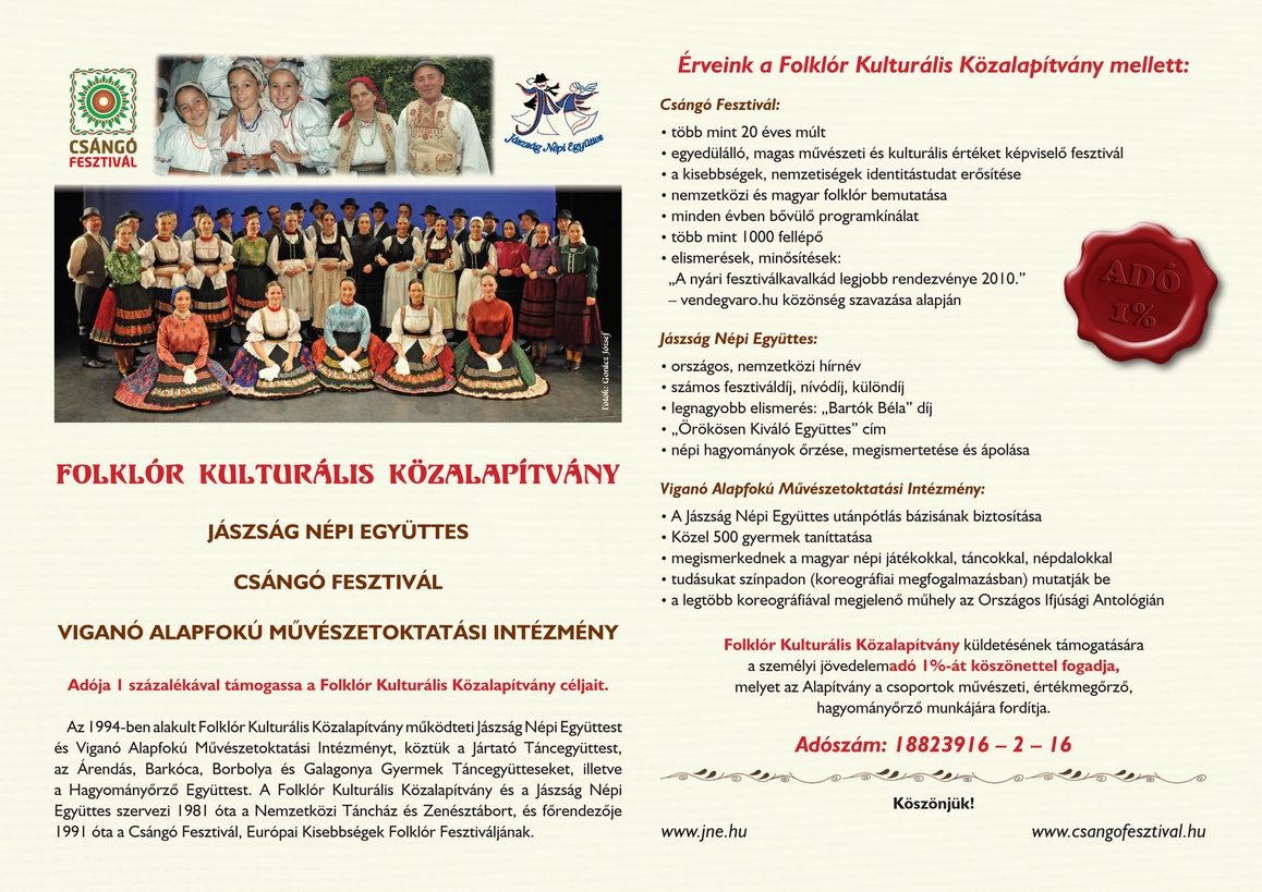 A Folklór Kulturális Közalapítvány SZJA 1%-os Rendelkező NyilatkozataIDE kattintva tölthető le! |